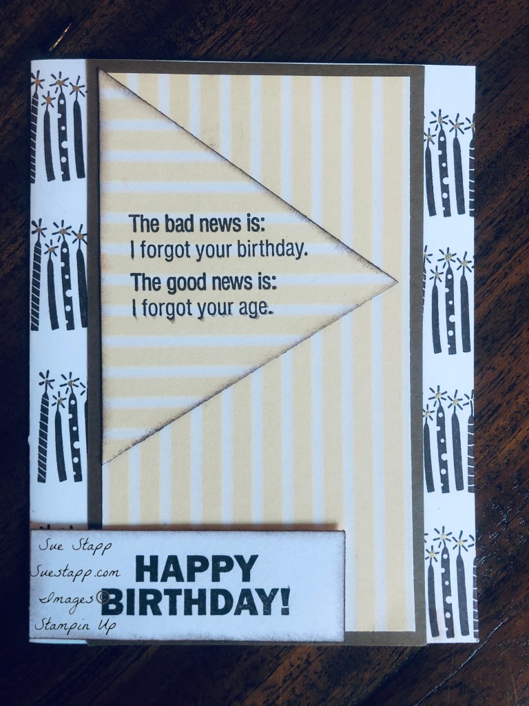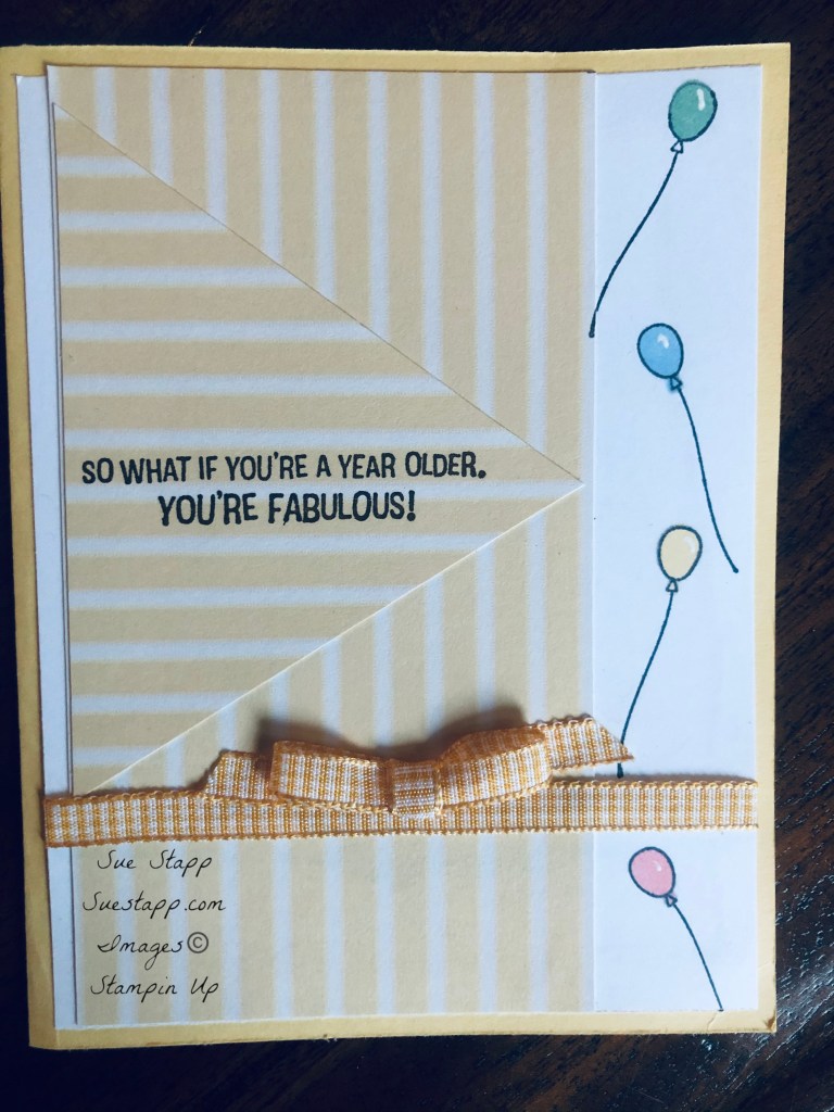 I will include some photos of the cards I created. I ran across some scraps of retired DSP and, since I have been trying to use those up from my stash I went with a yellow striped background.