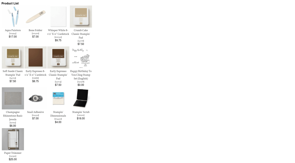 Yes, I’ve been cleaning out my shelves and cabinets and have come across many Stampin Up products that have been loved and a few that are brand new. As demonstrators we are encourages to market primarily current products that are available for purchase. There are many retired sets that I can’t bare to part with so they remain on a seperate shelf (ok, really three shelves). The remainder I will offer at half price or the equivalent dollar amount in purchases from the new annual catalog that comes out the end of this month. So if you choose $50.00 in product you can chooses $50.00 worth of retired items. The Sale A Bration items, which are marked as $0.00, will be priced at $10.00 each or an equivalent purchase of $10.00. All items are final sales and available on a first come first served basis.