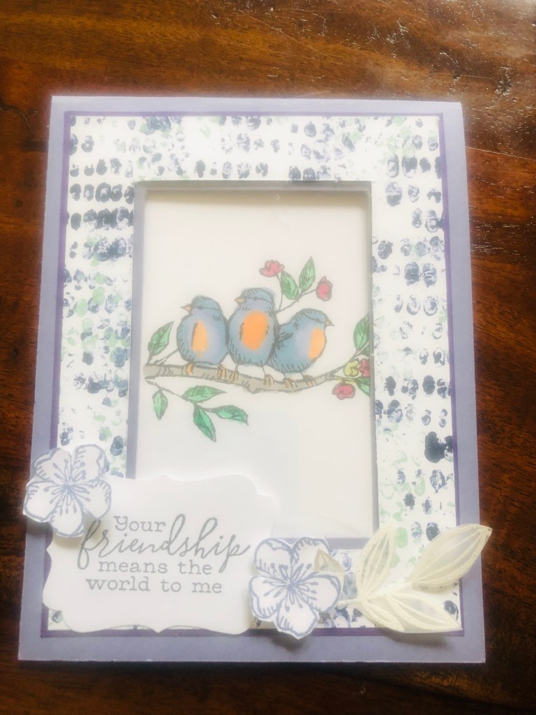 This is a window card with the adorable birds showing through, sorry the picture has glare from the window sheet.