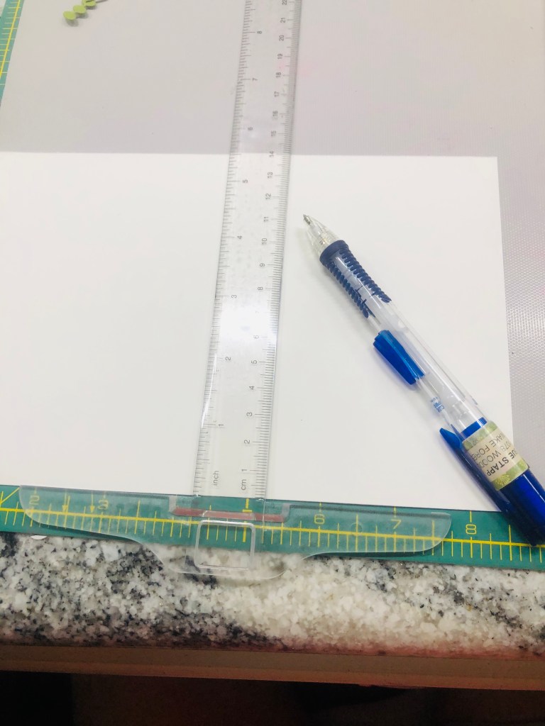 Next I cut a piece of Whisper White card stock at 5 1/2″ X 8 1/2 mark.. I drew a line at the middle 4 1/4″